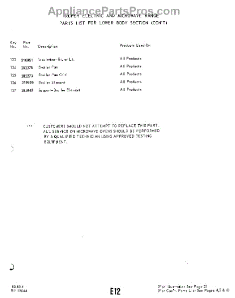 Parts for 2889W00