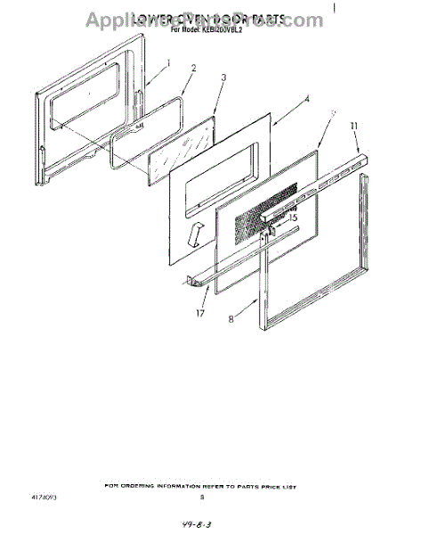 This screw is used to secure the handle end cap to the center of the door. The screw size measures 8-18 x 1/2 inches.