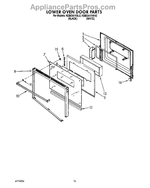 Parts for Kitchenaid KEBI241YWH0: 06 - Lower Oven Door Parts