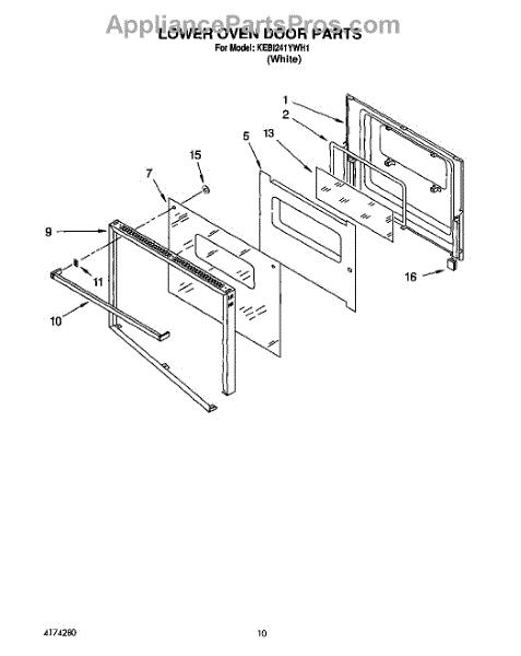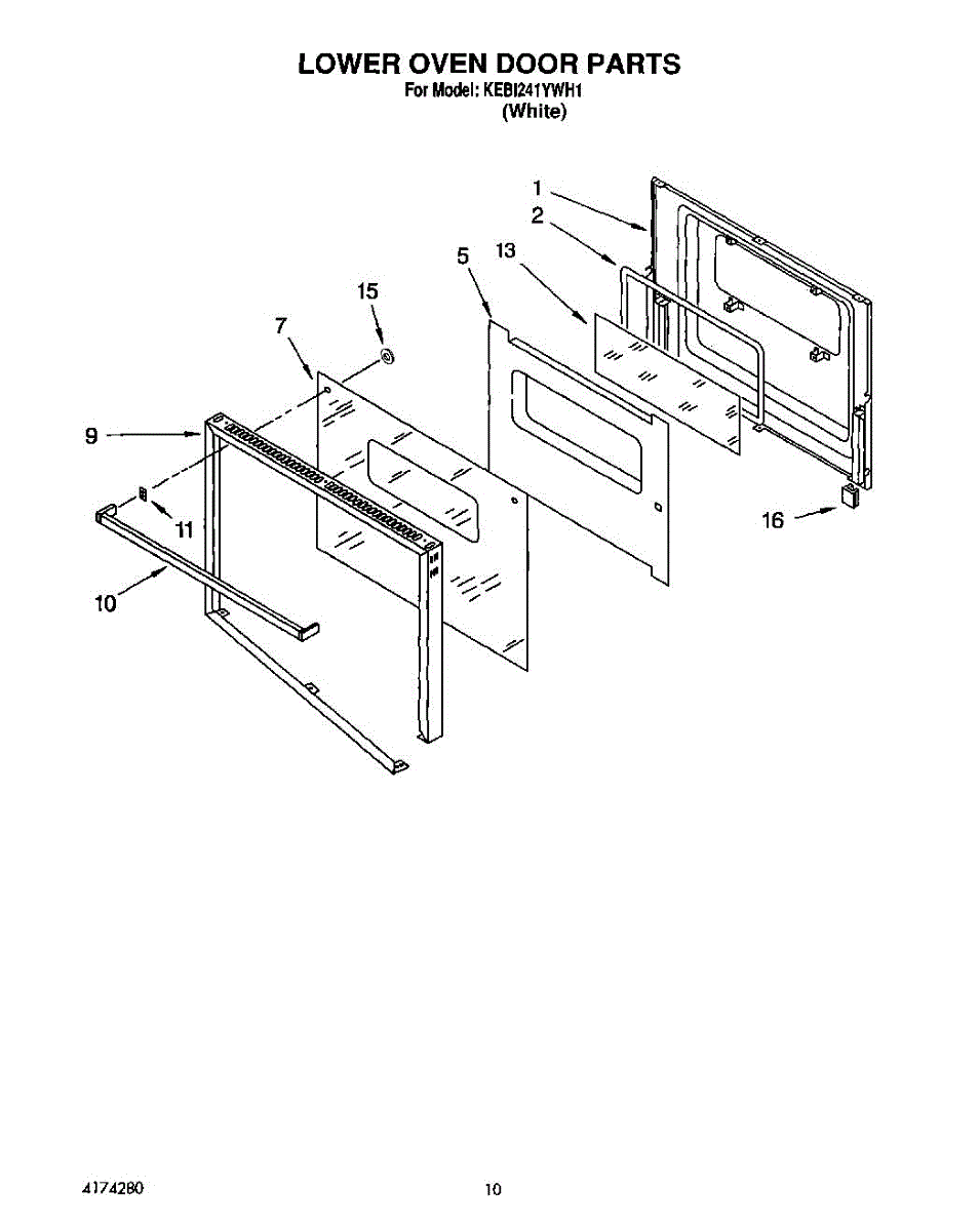 Parts for Kitchenaid KEBI241YWH1: 06 - Lower Oven Door Parts