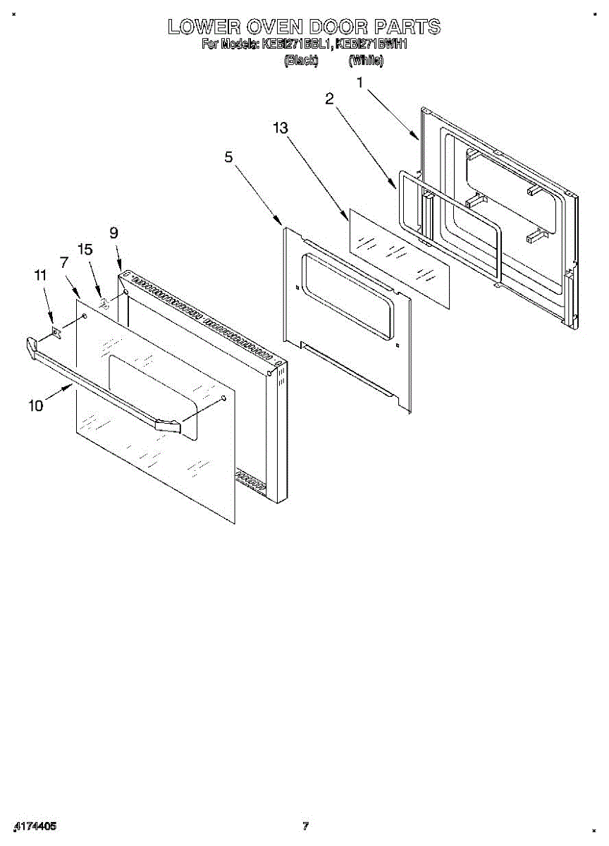Parts for Kitchenaid KEBI271BWH1: 05 - Lower Oven Door Parts