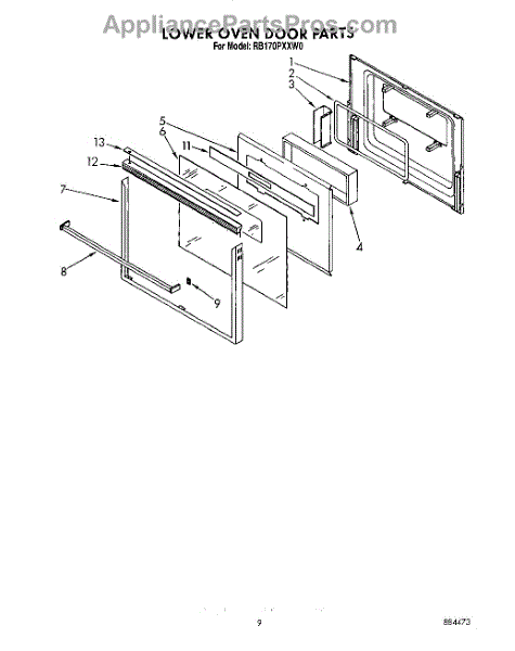 Parts for Whirlpool RB170PXXW0: 06 - Lower Oven Door Parts