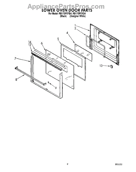 Parts for Whirlpool RB170PXYB4: 05 - Lower Oven Door Parts