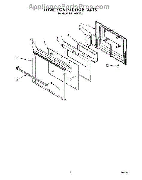 Parts for Whirlpool RB170PXYQ2: 06 - Lower Oven Door Parts