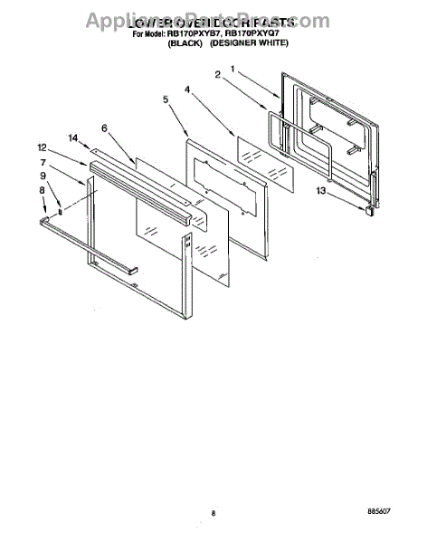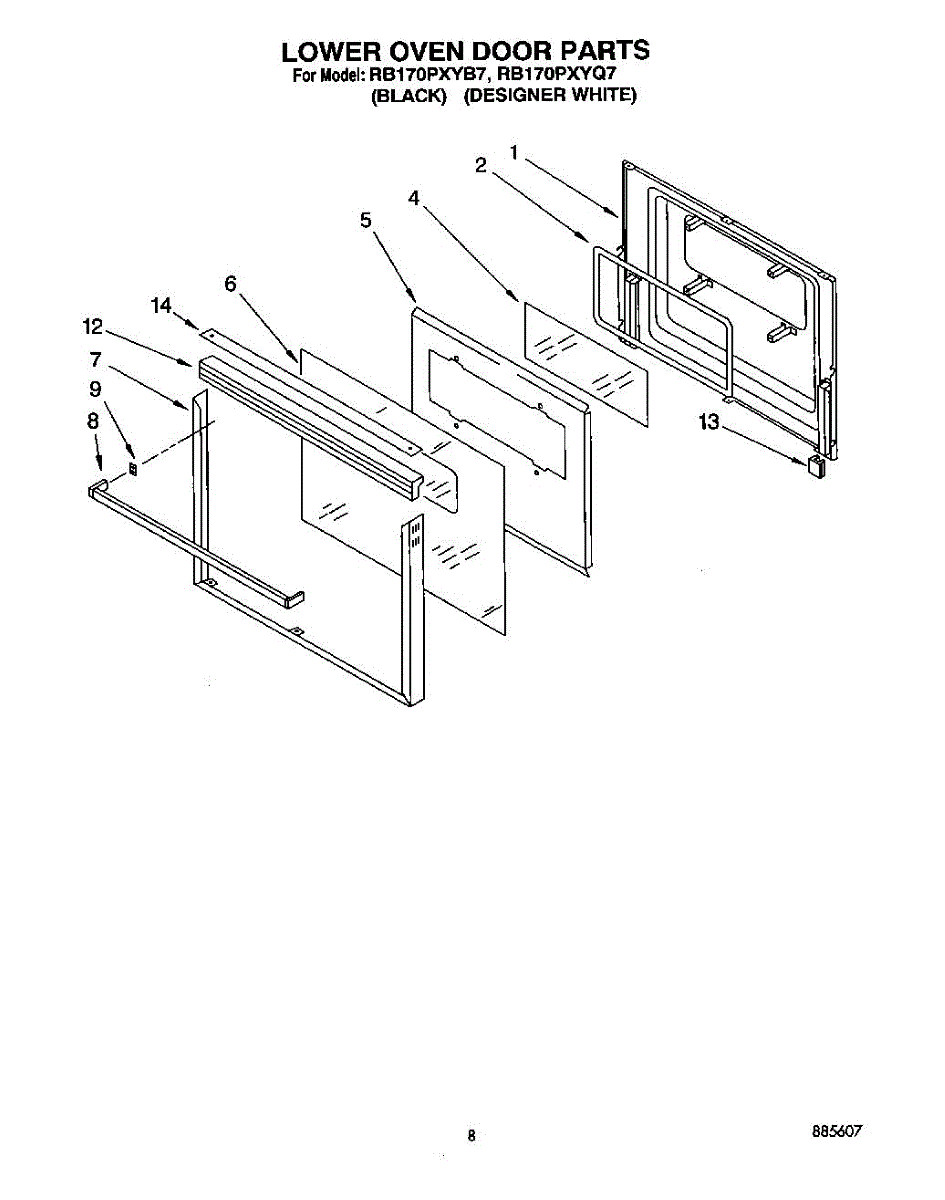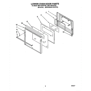 Parts for Whirlpool RB170PXYQ7: 05 - Lower Oven Door Parts