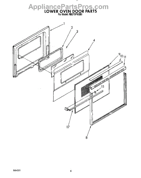This screw is used to secure the handle end cap to the center of the door. The screw size measures 8-18 x 1/2 inches.