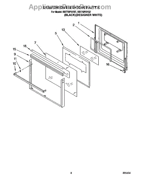 Parts for Whirlpool RB770PXYB7: 05 - Lower Oven Door Parts