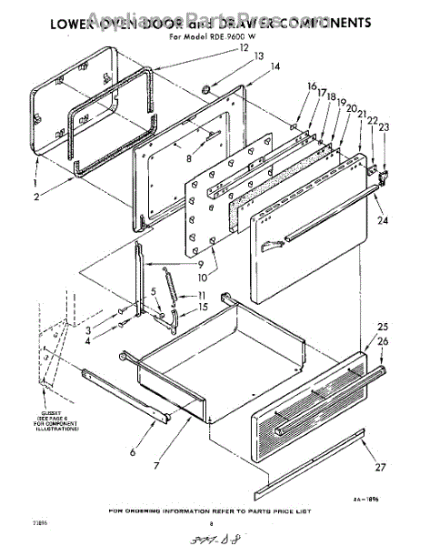 Parts for Whirlpool RDE9600W: 08 - Lower Oven Door And Drawer Parts