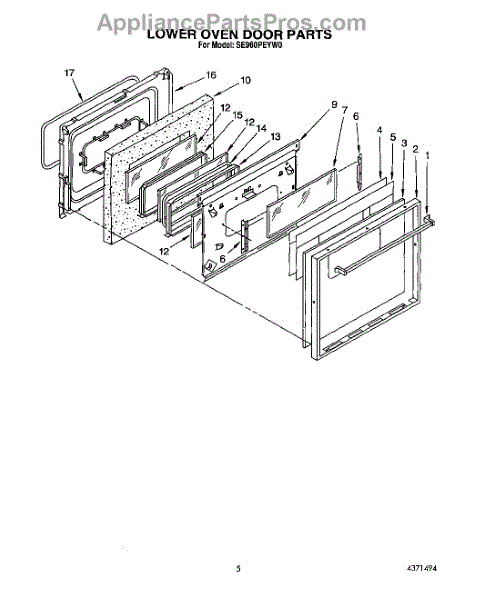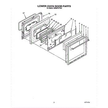 Parts for Whirlpool SE960PEYW0: 05 - Lower Oven Door Parts