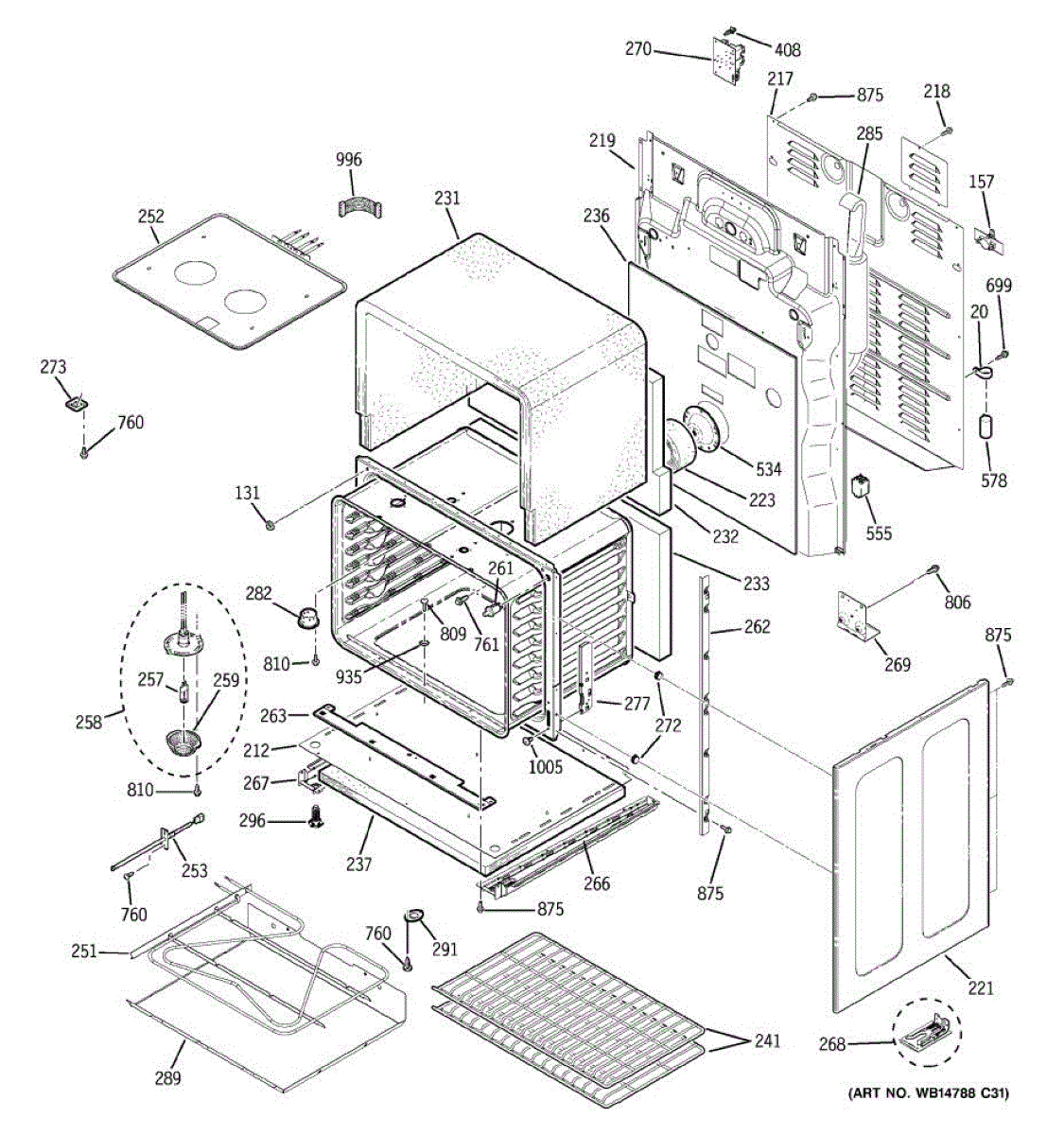 Oven cavity support plate mounts inside the oven chamber to provide structural support. Replace if plate is cracked, bent, warped, or missing.