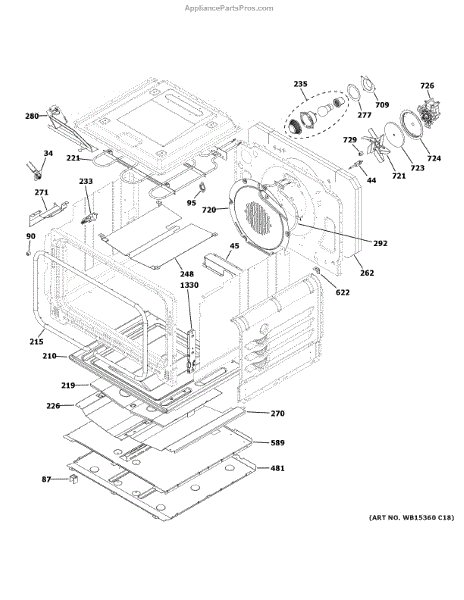 The Convection Motor is an OEM part for GE gas ranges. It is the component responsible for circulating hot air around food inside the oven cavity during convection cooking cycles. Causes of a bad convection motor include failed windings, worn bearings, or damage from excess heat over time. Symptoms of a bad convection motor include: