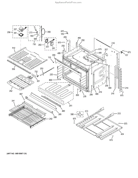 Oven rack slide assembly enables smooth gliding for easy loading and unloading. Replace if bent, worn, or seized to restore proper movement and support.