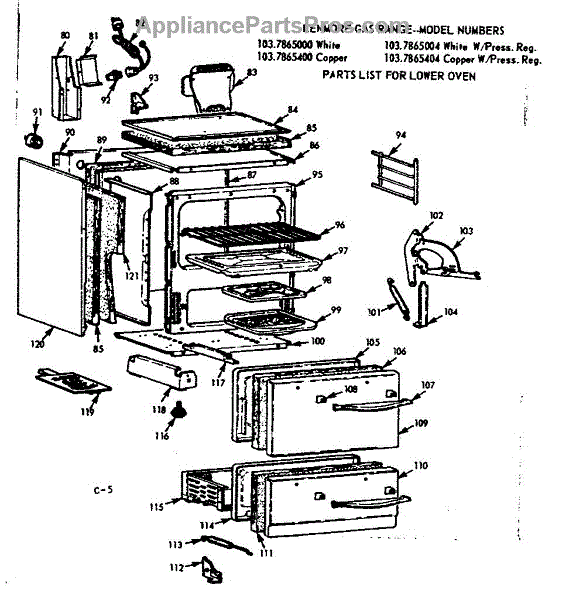 Parts for Kenmore 103.7865404 (1037865404, 103 7865404): Lower Oven Parts