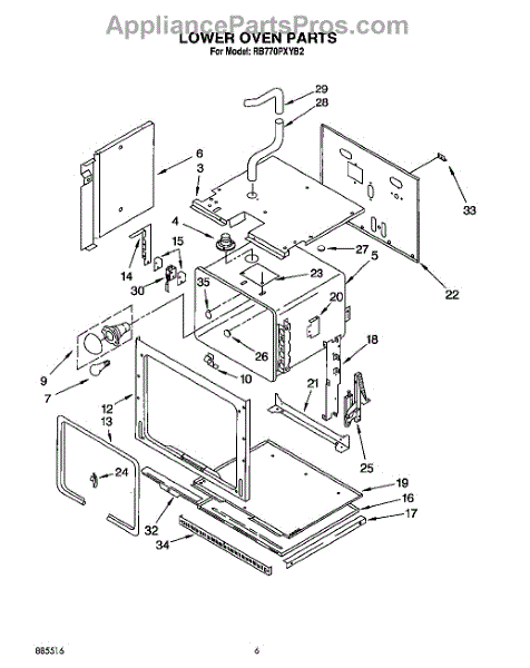 This factory screw secures appliance components to their mounting points. Replace missing, worn, or stripped hardware to restore a tight fit, proper alignment, and quieter operation across the affected assembly.