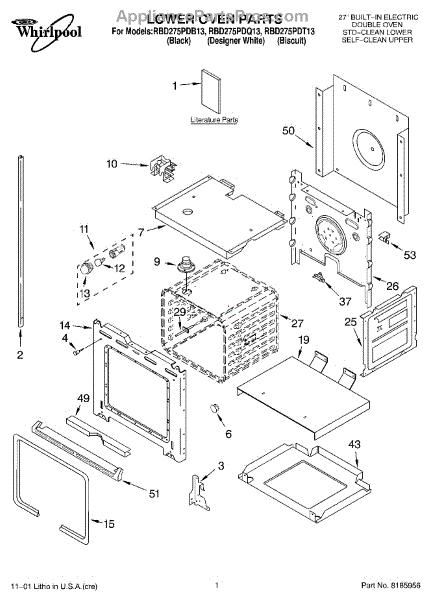 Parts for Whirlpool RBD275PDT13: 01 - Lower Oven, Literature Parts