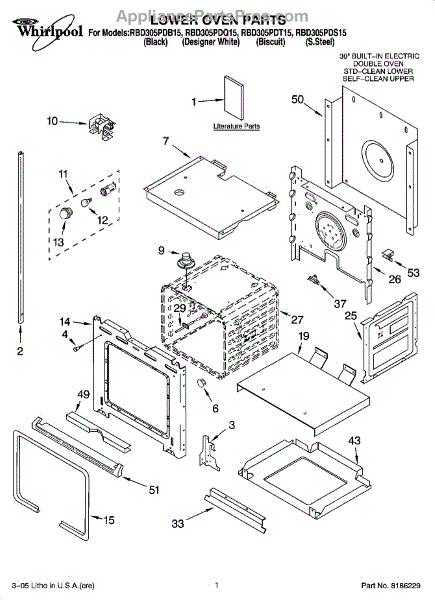 Parts for Whirlpool RBD305PDB15: 01 - Lower Oven Parts