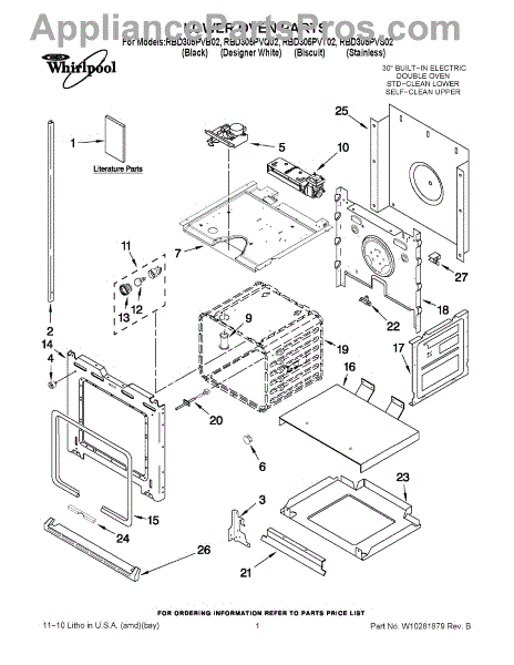 The Lower Blower Assembly is an OEM component for Whirlpool ranges. Located underneath the oven cavity, the lower blower assembly circulates heated air throughout the oven chamber during all cooking functions that require convection.