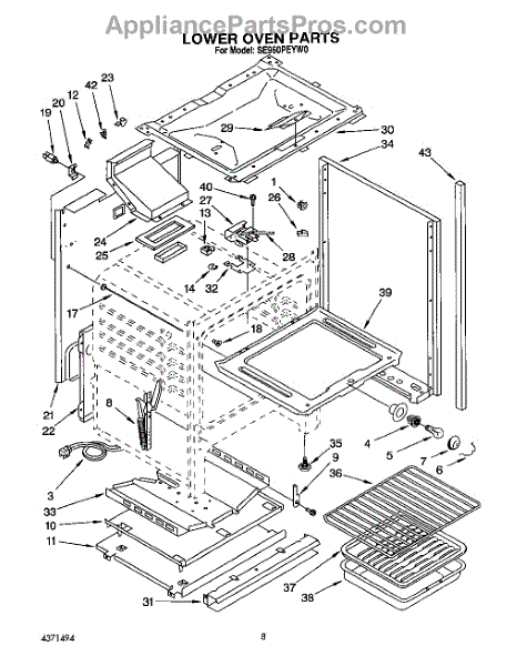 Parts for Whirlpool SE960PEYW0: 07 - Lower Oven Parts