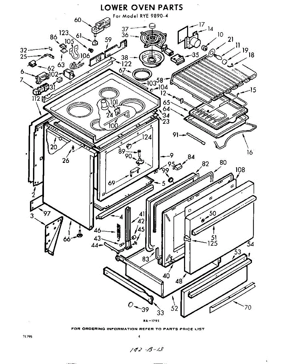 Parts for Whirlpool RYE98904: 04 - Lower Over Parts