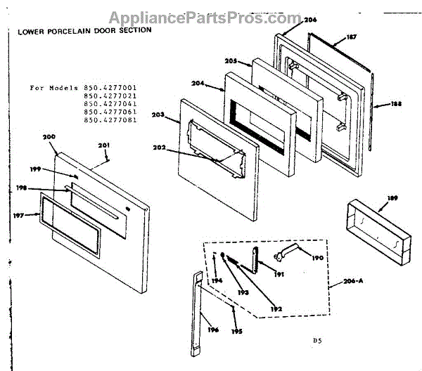 Parts for Kenmore 850.4277041 (8504277041, 850 4277041): Lower Porcelain Door Section Parts