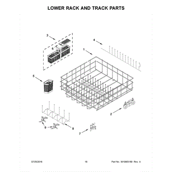 Parts for Kitchenaid KDTM384EBS1: 10 - Lower Rack And Track Parts