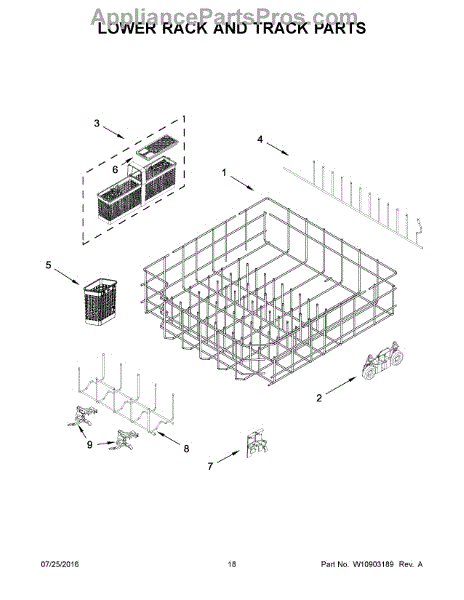 The Lower Dishrack is an OEM part for Whirlpool dishwashers. It provides space for arranging and securely holding your dishes during the dishwashing cycle.