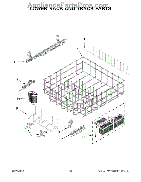 Parts for Kitchenaid KDTM704EBS1: 10 - Lower Rack And Track Parts