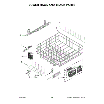 The Lower Dishrack is an OEM part for Whirlpool dishwashers. It provides space for arranging and securely holding your dishes during the dishwashing cycle.