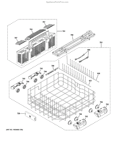 The Lower Rack Assembly is an OEM component specifically designed for GE dishwashers. It provides shelving to organize dishes in the bottom zone for optimal cleaning. Subject to mechanical stresses and chemical wear over time, the plastic and metal parts that make up the lower rack can weaken.