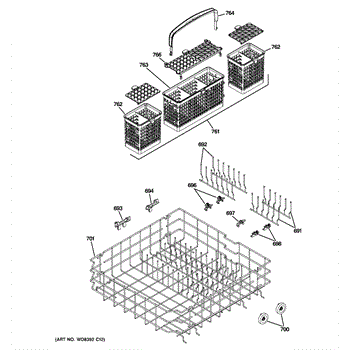 Parts for Ge CDWT980V50SS: 04 - Lower Rack Assembly Parts