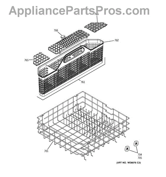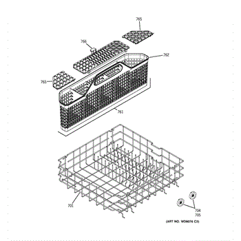 The Silverware Basket Assembly is an OEM part for GE dishwashers. Located in the lower rack, the silverware basket contains and separates utensils during the wash cycle. The basket measures approximately 3 inches wide by 8-1/2 inches high by 20 inches deep.