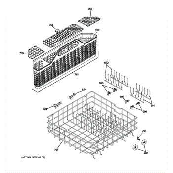 Parts for Ge GDWT308V00WW: 04 - Lower Rack Assembly Parts