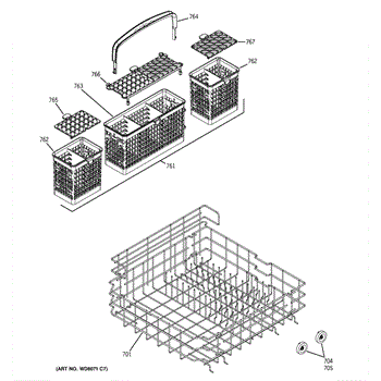 Replacement silverware basket for dishwashers. Holds utensils and flatware securely during wash cycles. Needed when original basket is cracked or broken.