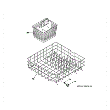 The Silverware Basket with Handle is an OEM part for GE dishwashers. It is designed to securely hold silverware and utensils during the washing cycle, ensuring they are effectively cleaned without damaging the dishwasher or other dishes. This basket features a handle, making it easy to remove and carry when loading or unloading cutlery. The silverware basket measures 8.5 inches in depth, 8.75 inches in height, and 7 inches in width.
