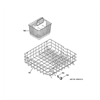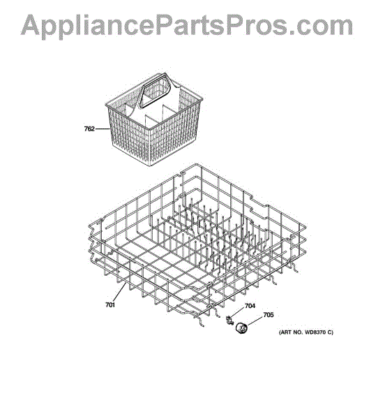 The Silverware Basket with Handle is an OEM part for GE dishwashers. It is designed to securely hold silverware and utensils during the washing cycle, ensuring they are effectively cleaned without damaging the dishwasher or other dishes. This basket features a handle, making it easy to remove and carry when loading or unloading cutlery. The silverware basket measures 8.5 inches in depth, 8.75 inches in height, and 7 inches in width.