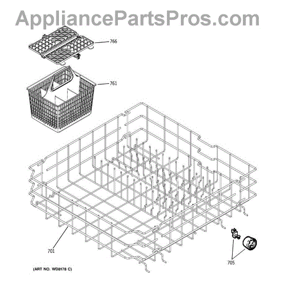 Replacement silverware basket with handle for your dishwasher. Needed when original basket is cracked, broken, or has worn holes that let utensils fall through.