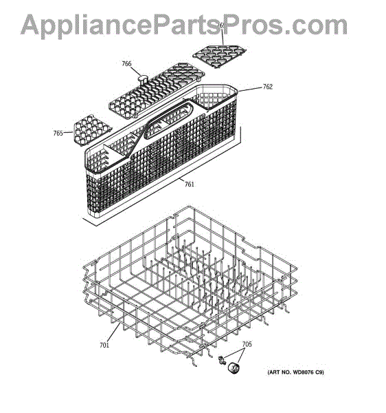 Replace your cracked, broken, or worn dishwasher silverware basket. Sits in the lower rack to hold and separate utensils during wash cycles.