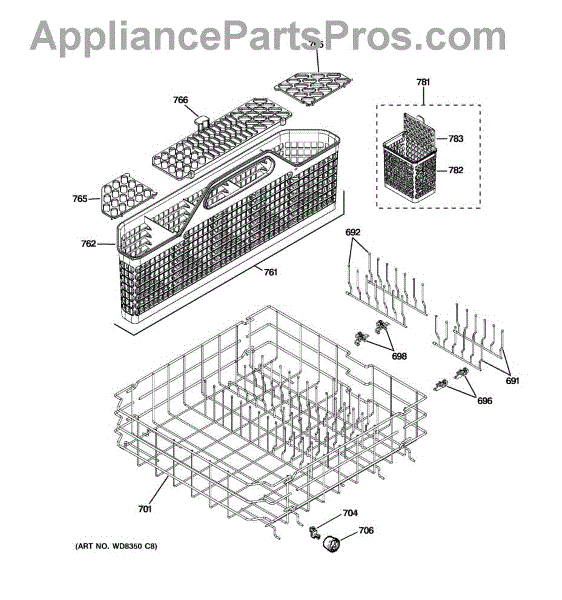 The Silverware Basket is an OEM part for GE dishwashers that is responsible for holding and organizing silverware for washing, this basket ensures that utensils are effectively cleaned and maintained. The basket measures about: 3 inches wide, 9 inches high, 19 inches deep. For the seven-piece silverware basket, order part number WD28X24469.