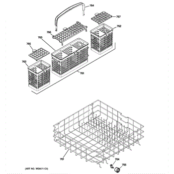 The Silverware Basket Assembly is an OEM replacement part for GE dishwashers. It is a specialized basket designed to hold and secure utensils, flatware, and other small items during the dishwashing cycle. It is important to note that if your original basket was a 3-piece design, the manufacturer has updated this part to a more convenient 1-piece design