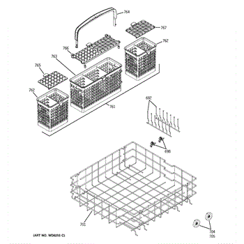The Silverware Basket Assembly is an OEM replacement part for GE dishwashers. It is a specialized basket designed to hold and secure utensils, flatware, and other small items during the dishwashing cycle. It is important to note that if your original basket was a 3-piece design, the manufacturer has updated this part to a more convenient 1-piece design