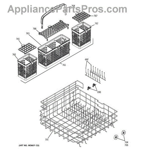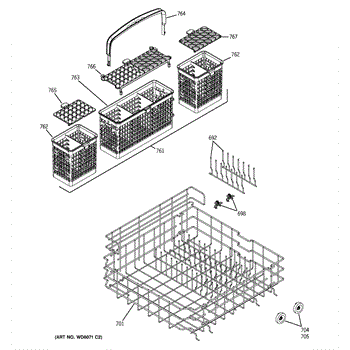 Replacement silverware basket for dishwashers. Holds utensils and flatware securely during wash cycles. Needed when original basket is cracked or broken.