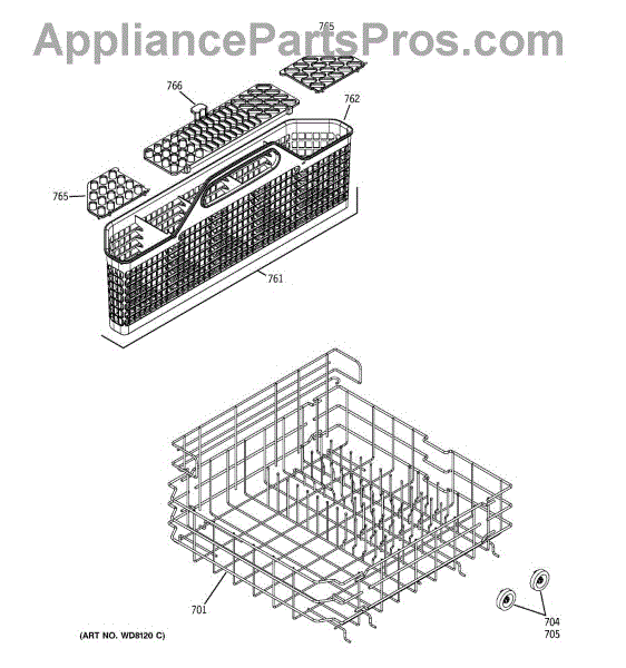 Parts for Ge GSD6300J00BB: 04 - Lower Rack Assembly Parts