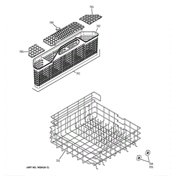 The Silverware Basket Assembly is an OEM part for GE dishwashers. Located in the lower rack, the silverware basket contains and separates utensils during the wash cycle. The basket measures approximately 3 inches wide by 8-1/2 inches high by 20 inches deep.