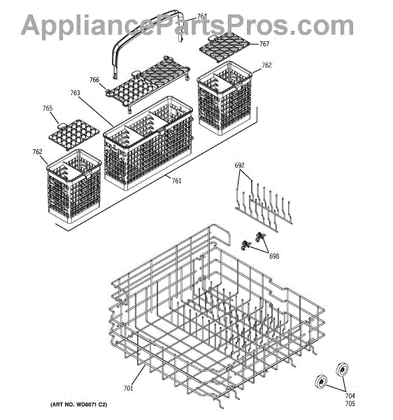 Parts for Ge GSD6500J00CC: 04 - Lower Rack Assembly Parts
