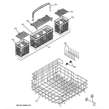 Replacement silverware basket for dishwashers. Holds utensils and flatware securely during wash cycles. Needed when original basket is cracked or broken.