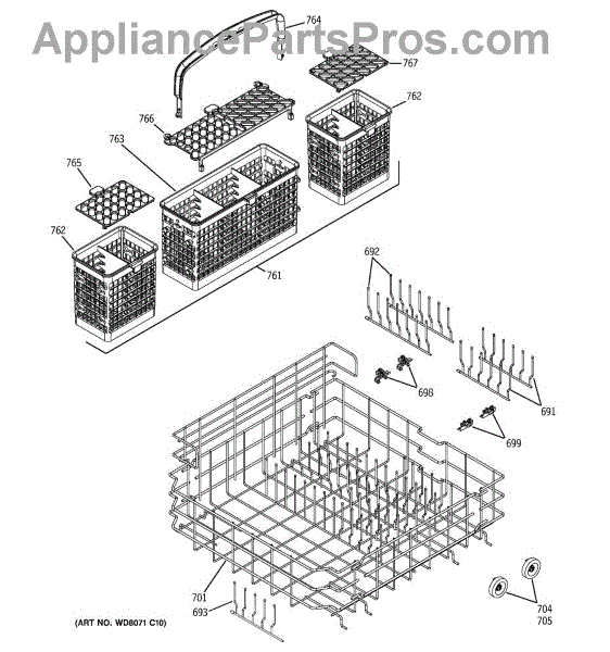 The Silverware Basket Assembly is an OEM replacement part for GE dishwashers. It is a specialized basket designed to hold and secure utensils, flatware, and other small items during the dishwashing cycle. It is important to note that if your original basket was a 3-piece design, the manufacturer has updated this part to a more convenient 1-piece design