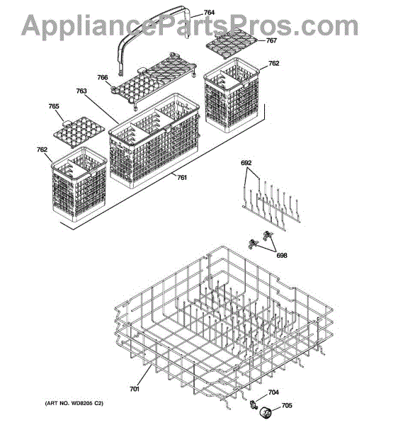 The Silverware Basket Assembly is an OEM replacement part for GE dishwashers. It is a specialized basket designed to hold and secure utensils, flatware, and other small items during the dishwashing cycle. It is important to note that if your original basket was a 3-piece design, the manufacturer has updated this part to a more convenient 1-piece design