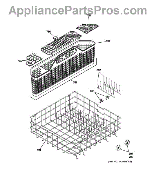 Parts for Ge PDW8200J01CC: 04 - Lower Rack Assembly Parts