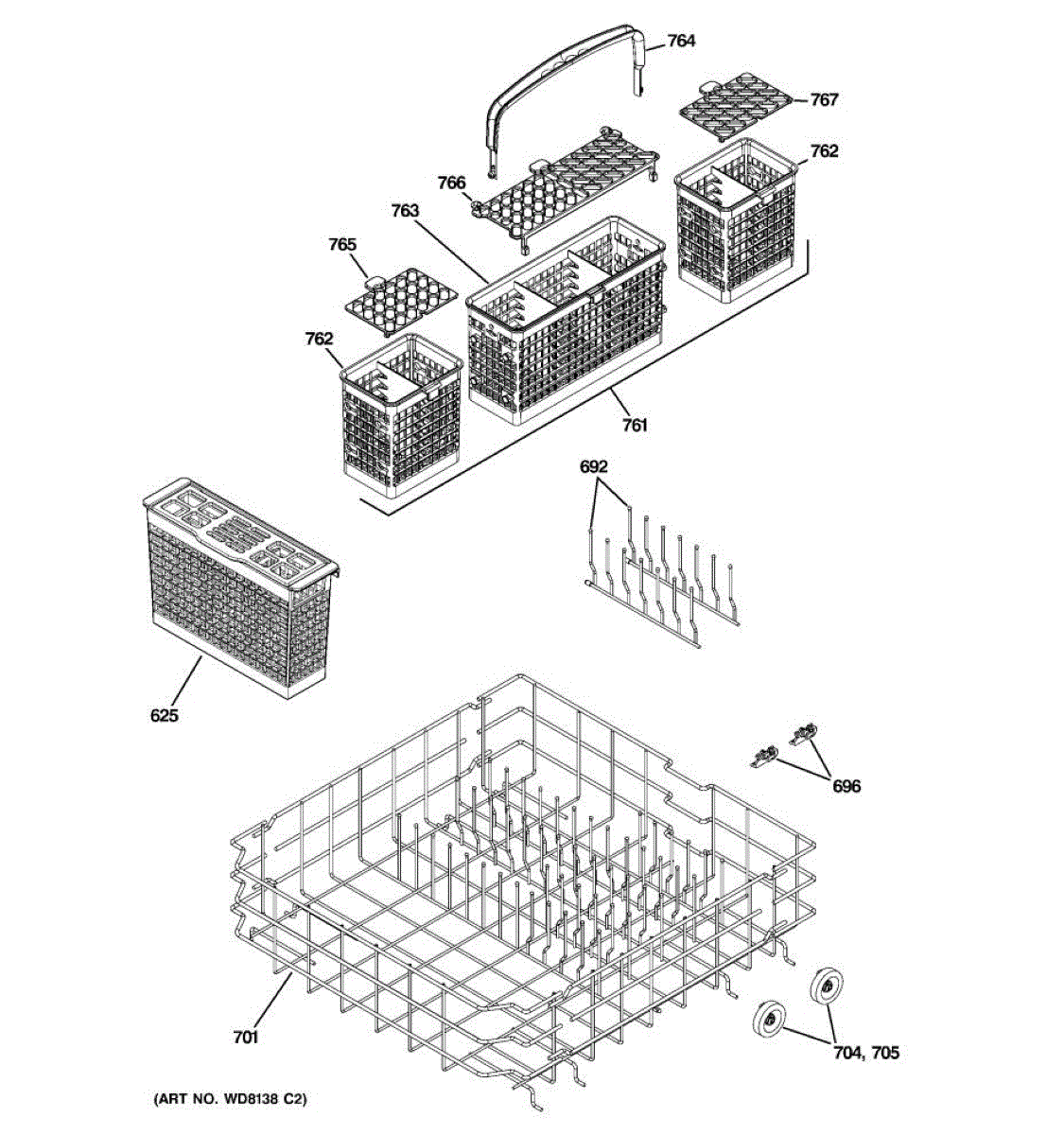 Replacement silverware basket for your dishwasher. Organizes utensils during wash cycles. Order if your original basket is cracked, melted, or broken.