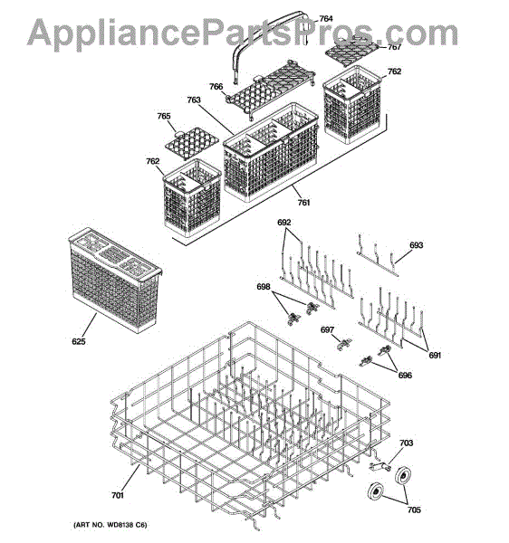 Parts for Ge PDW8800J03BB: 04 - Lower Rack Assembly Parts